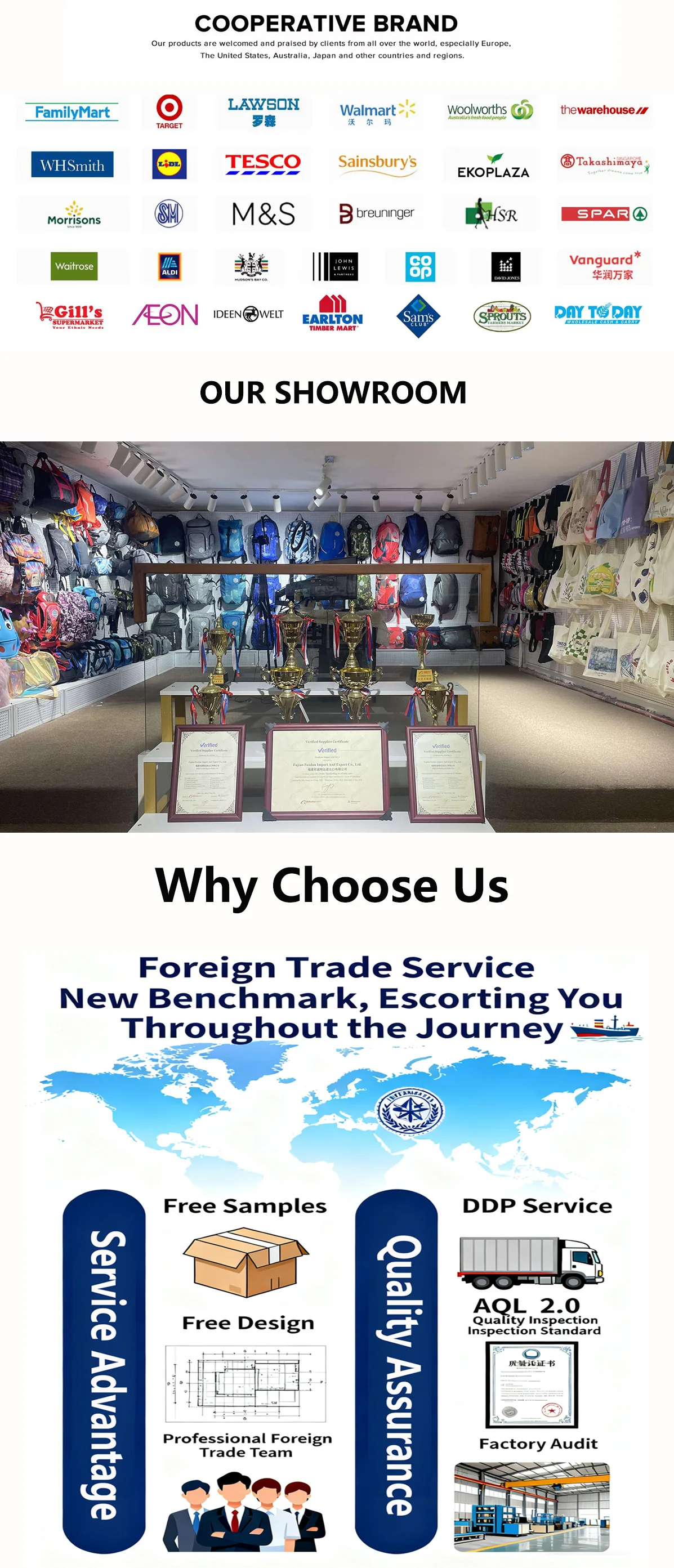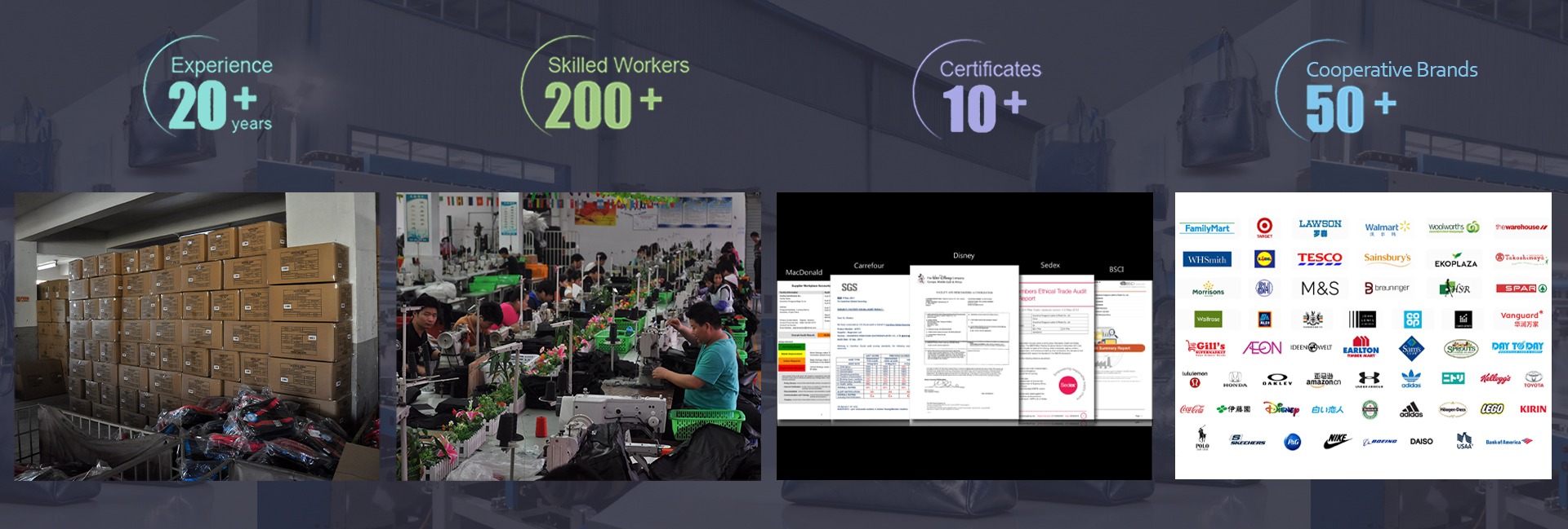 Principaux produits : Sacs de voyage, sacs à provisions, sacs de taille, sacs d'école, sacs plus frais